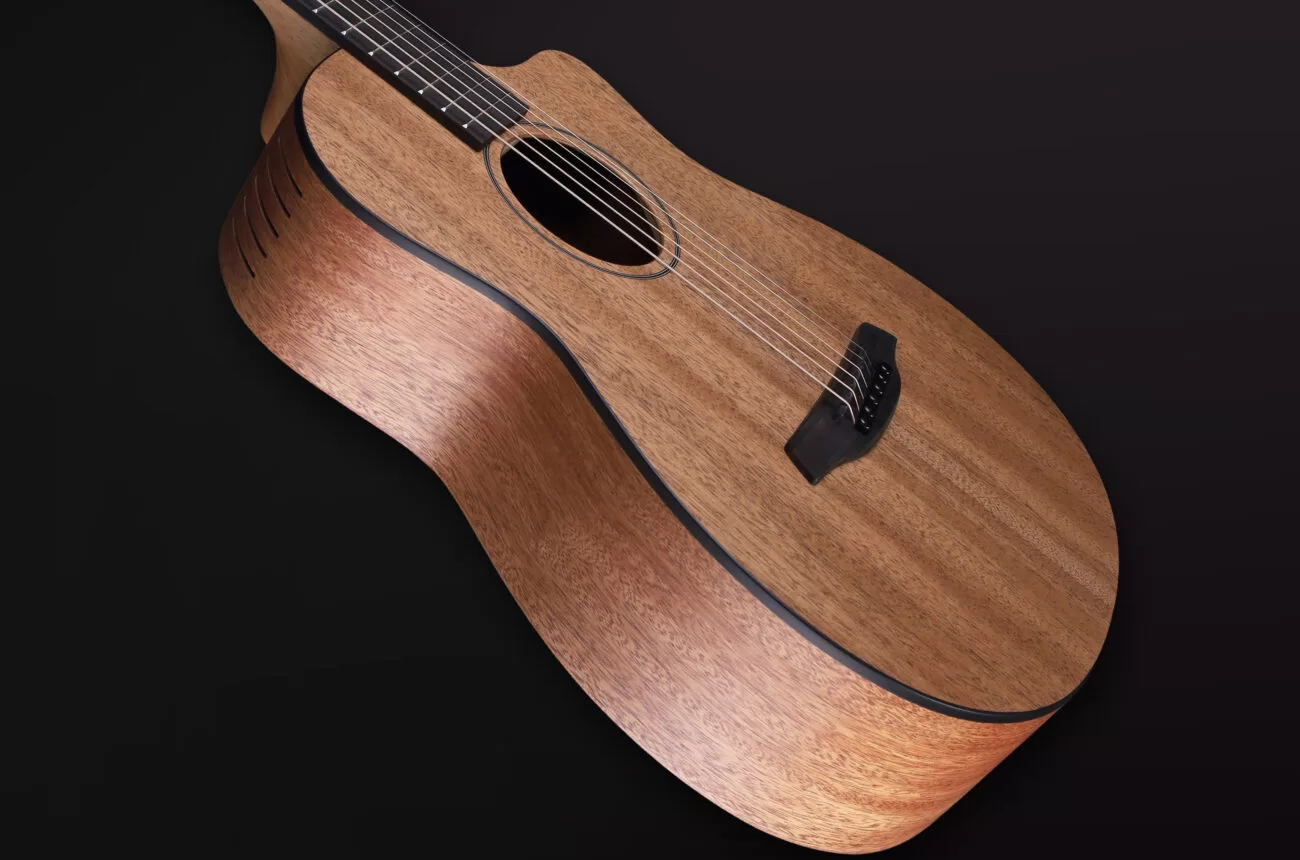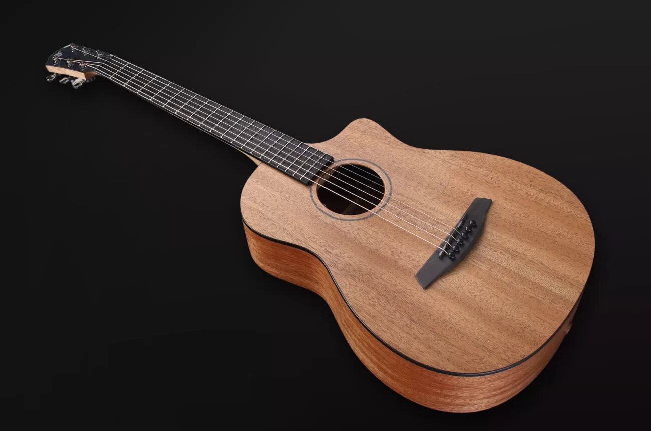 - Podróżna gitara akustyczna z litego drewna o krótkiej menzurze