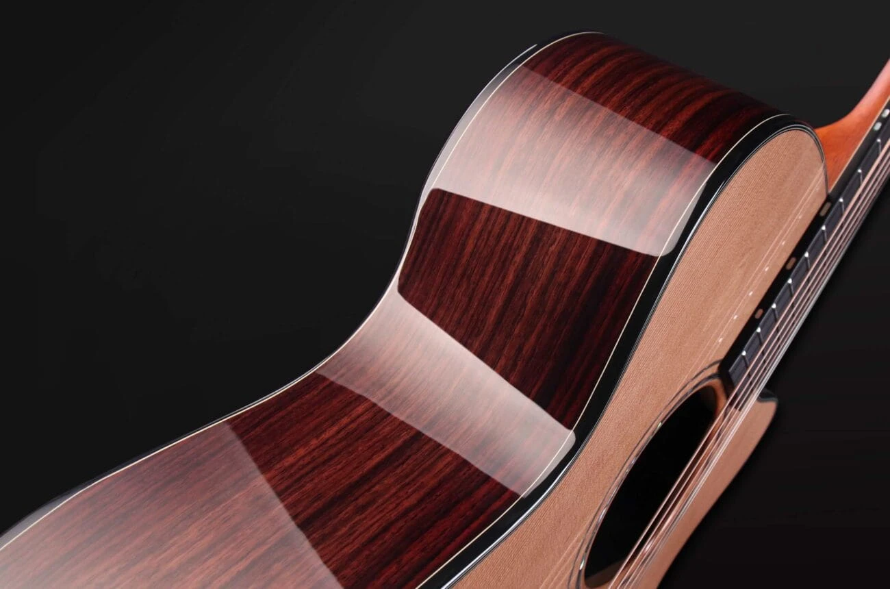 Instrument jest chroniony naszym opatentowanym wykończeniem Full-Pore High-Gloss Finish, które zostało opracowane w celu poprawy jakości brzmienia gitary. Wykończenie składa się z ultracienkiej warstwy wysoce odpornego lakieru, który zapewnia doskonałą ochronę powierzchni i jednocześnie uwydatnia strukturę drewna.