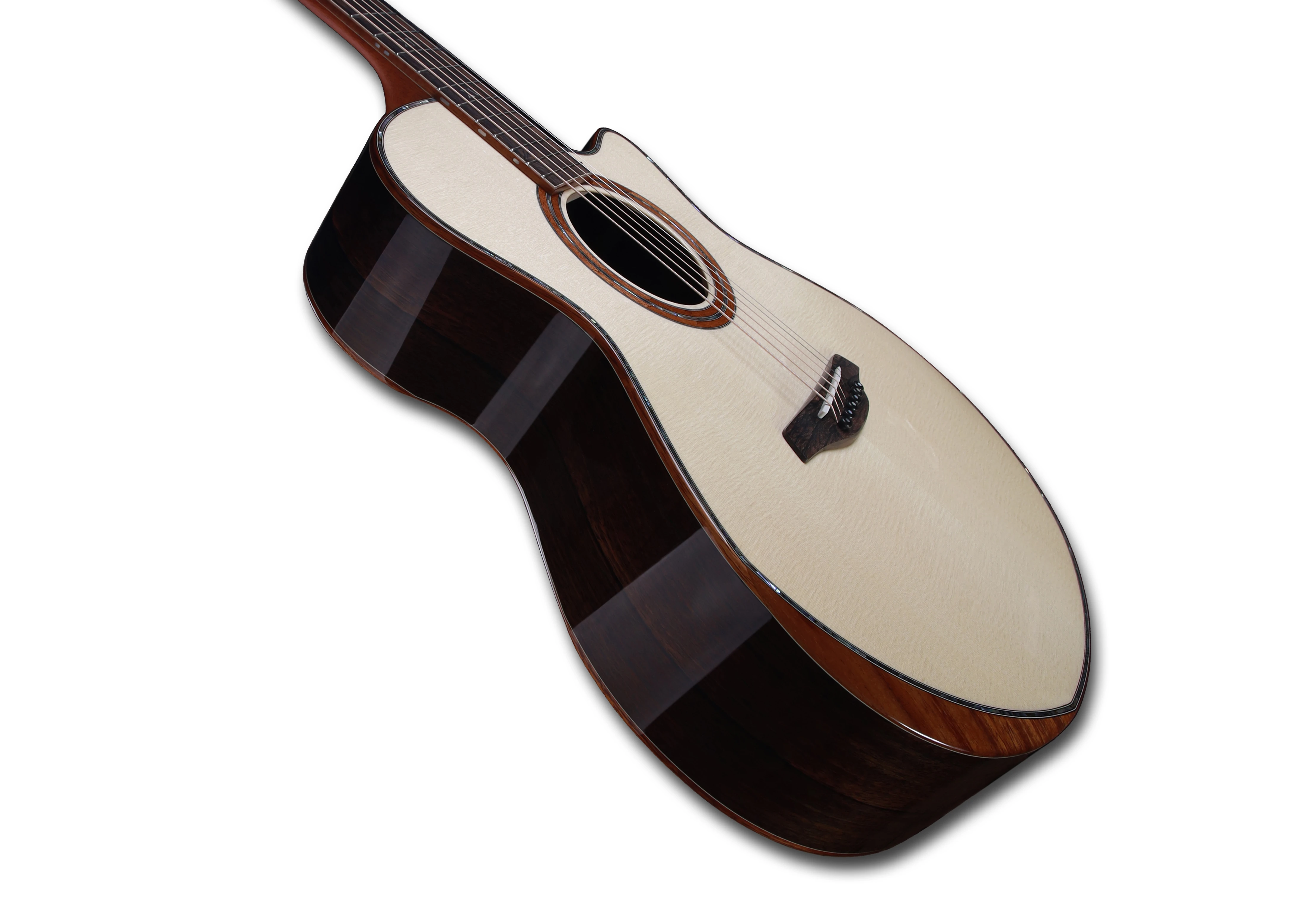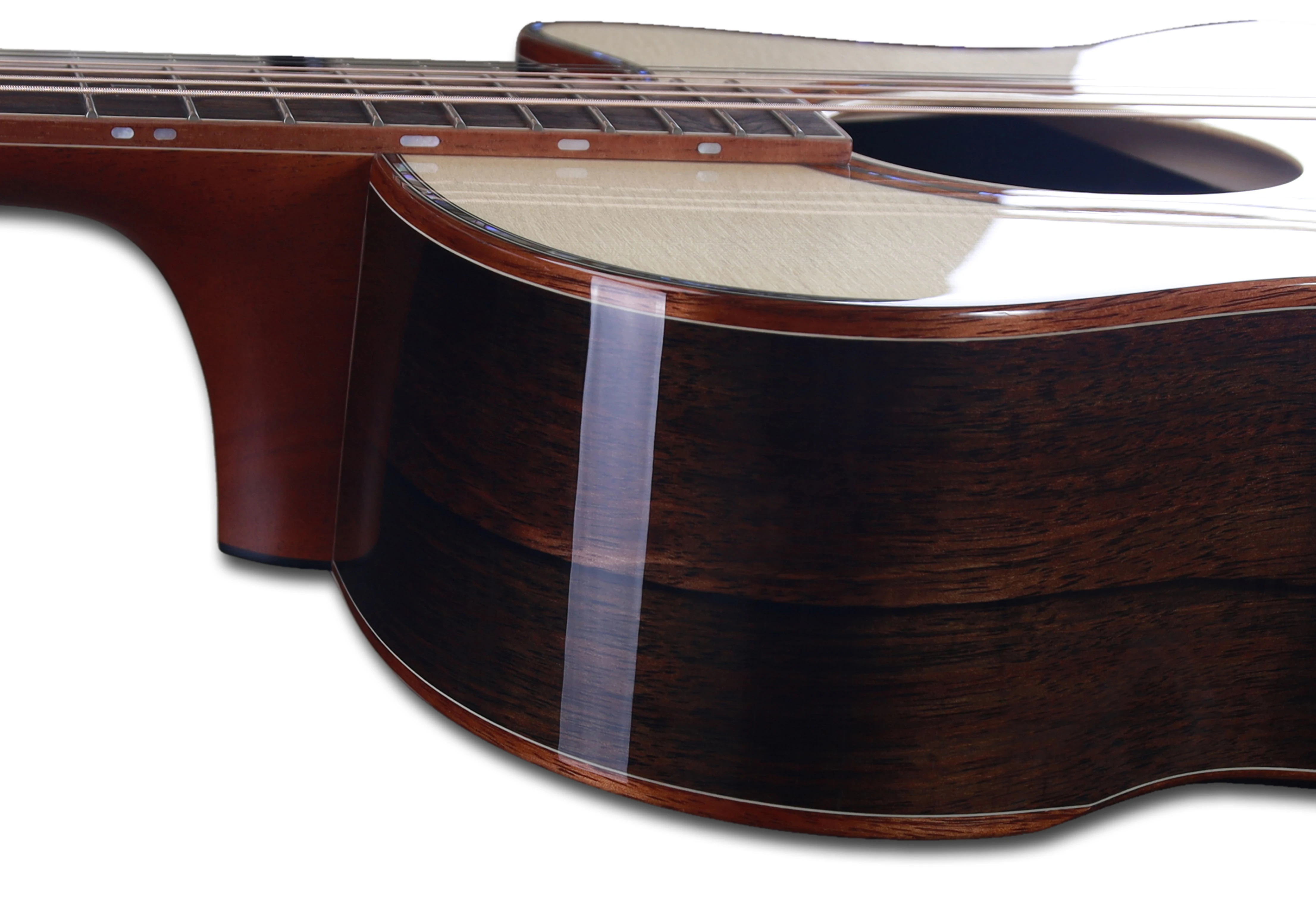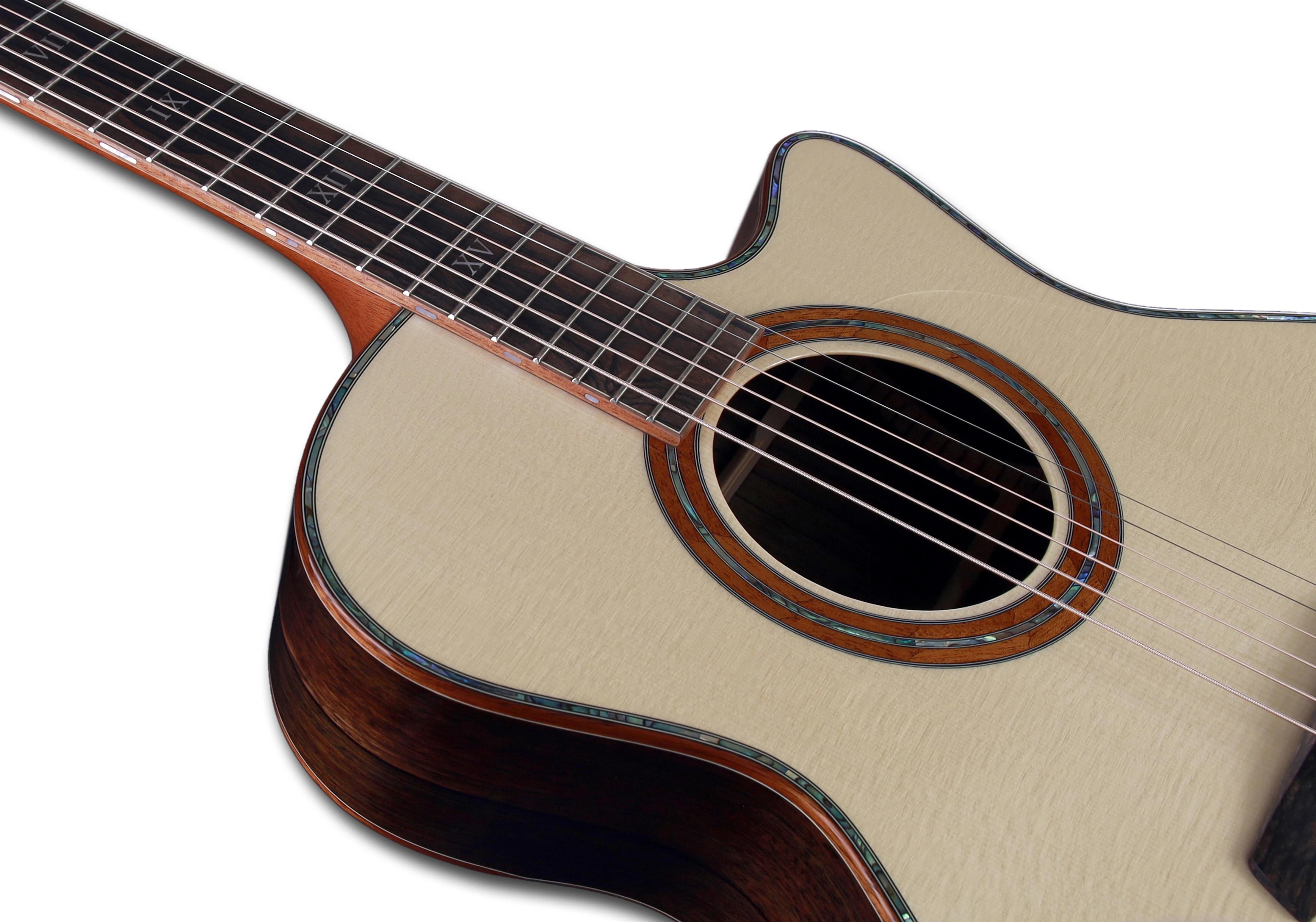 Model wyposażono w ergonomiczne rozwiązanie Bevel Duo wykonane z hawajskiego koa – dwa profilowane ścięcia na froncie i tyle korpusu znacząco zwiększają wygodę gry, redukując nacisk na przedramię i żebra. Dodatkowo zastosowany Booster Soundport poprawia naturalną projekcję instrumentu i pozwala gitarzyście lepiej słyszeć rezonans gitary podczas gry.