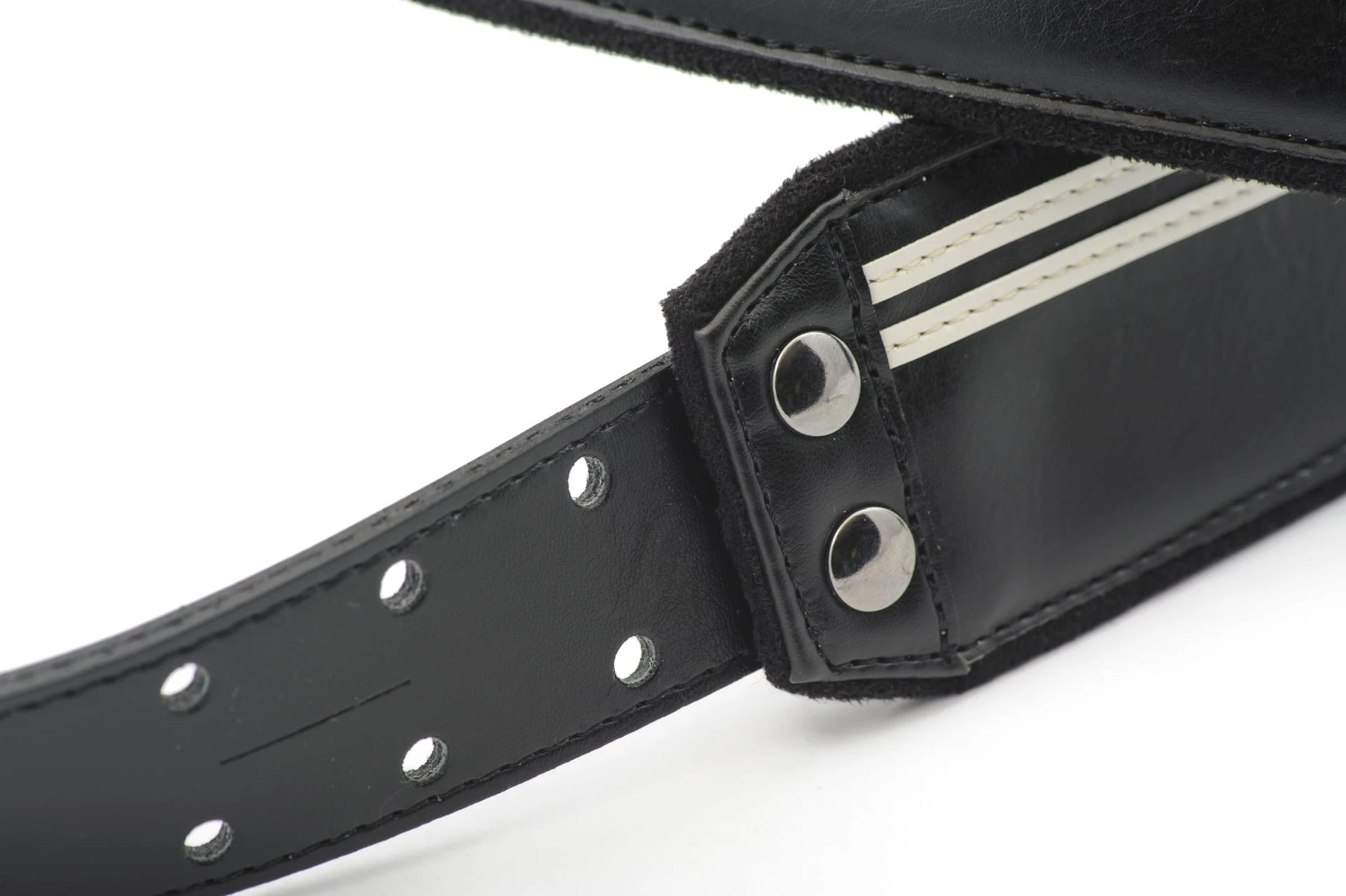 Pasek jest wyściełany 5mm lateksem, dzięki czemu jest bardzo wygodny i lekki. W przedniej wszywce znajdują się dwie małe kieszonki na kostki, a w tylnej wszywce znajdują się dwa nacięcia dające szybki dostęp do piórek. Świetnie wykonany pasek o prostym designie, który zawsze dobrze wygląda.